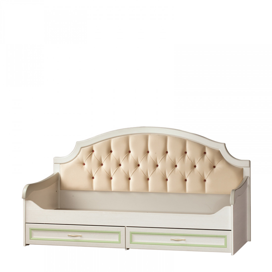 Корпус: ДСП, декор – ясень белый. Основание кровати – ламели