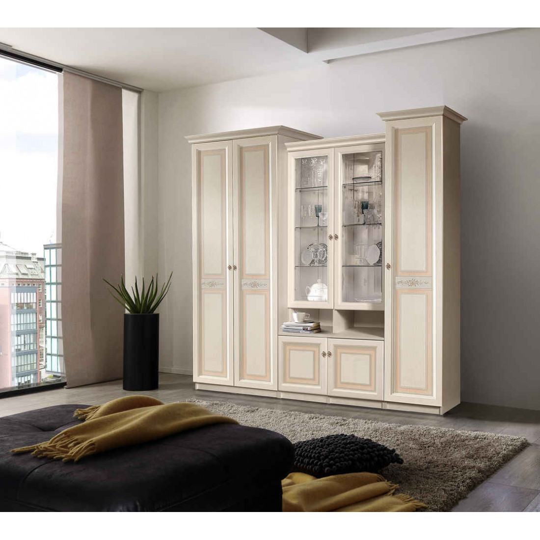 Гостиная Анна – истинное произведение искусства, она сочетает в себе идеальное дизайнерское решение, высокое качество материалов, обилие элементов декора. Сочетание модных светлых оттенков придает этой коллекции мебели особую нежность и утонченность, позволяет ей быть романтичной за счет изогнутых форм, а также благодаря мельчайшим деталям, придающим очарование и гармонию.