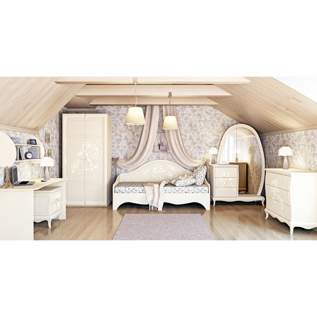 Родители подрастающей леди не понаслышке знают, насколько вкусы молодежи могут кардинально отличаться от представлений красоты и эстетики более зрелого и состоявшегося поколения. Но, несмотря на все противоречия, дети в душе уверены в безусловной поддержке старших, трепетной любви и заботе. В родительском доме, детской или подростковой комнате, очень важно создать атмосферу уюта и безмятежного спокойствия, которому ребенку любого возраста будет всегда приятно погрузиться, ощутить теплоту домашнего очага и крепость уз. Детская Астория от Мебель-Неман для обстановки комнаты девочки идеальна в этом плане, она полностью справится с поставленной задачей. Мягкие очертания и нежная кремовая расцветка располагают к спокойствию, а изысканный и одновременно с этим стильный, современный дизайн придется по душе вашей принцессе.