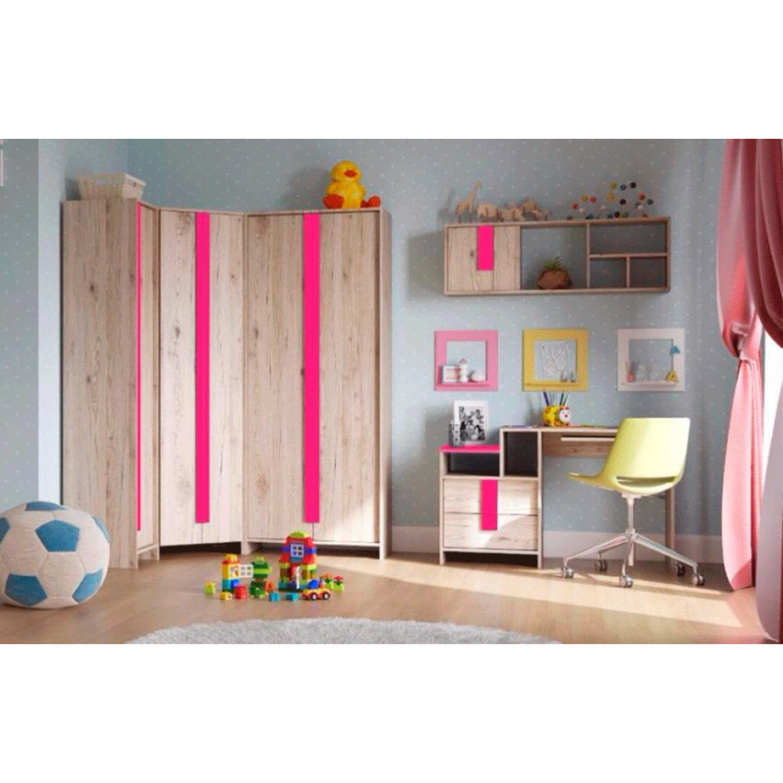 Одежда, размещенная в просторных шкафах, один из которых угловой, будет всегда под рукой. За письменным столом удобно и читать, и выполнять письменные задания, и работать за компьютером. Личные вещи займут место в тумбе, на полке или в стеллажах. Удобная кровать поможет набраться сил перед следующим учебным днем, а яркие цвета комплекта «Скаут» обязательно поднимут настроение.