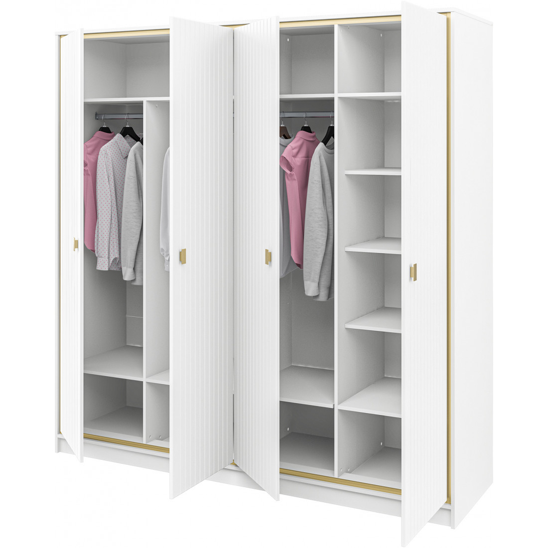Пятистворчатый шкаф для одежды с зеркалом Тиффани 5DG2S Z крем вудлайн