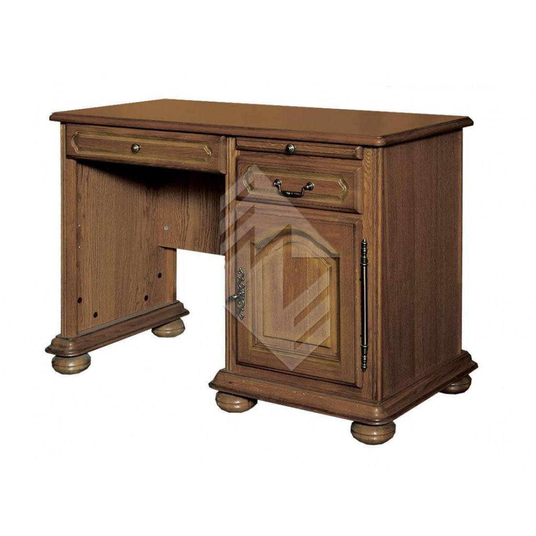 Письменный стол с одной правой тумбой из коллекции мебели для кабинета или гостиной "Давиль" это классика среди столов. Тумба оснащена выдвижным ящиком и дверцей, в центральной части стола также есть выдвижной ящик на направляющих. Выполнен с использованием массива дуба. Выполнен в цвете "Медовый дуб с золотой патиной".