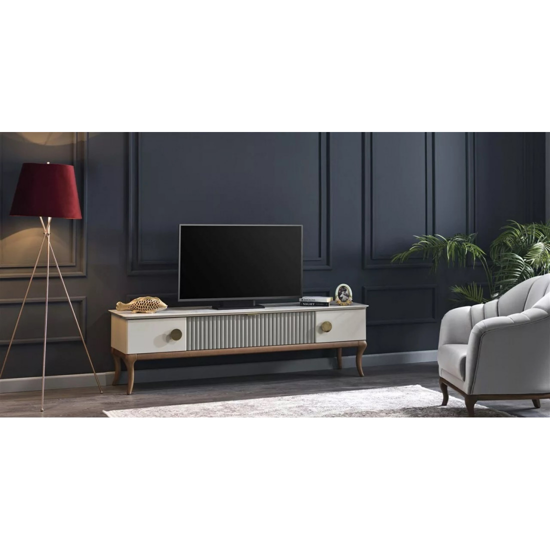 Многофункциональная тумба под TV "Песаро". Шикарная стенка турецкого производства. На нее можно поставить телевизор размером в 55 дюймов. Есть место для DVD плеера и игровой приставки. Все вещи будут на своих местах, что не может не радовать.