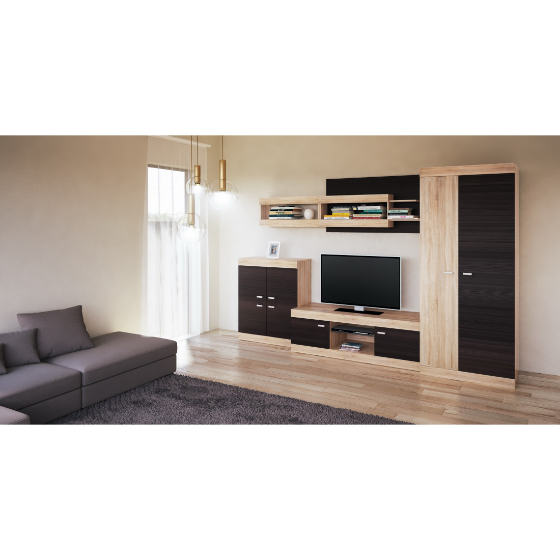 В этой коллекции дизайнеры сочетают два модных цвета - дуб сонома и дуб ниагара.