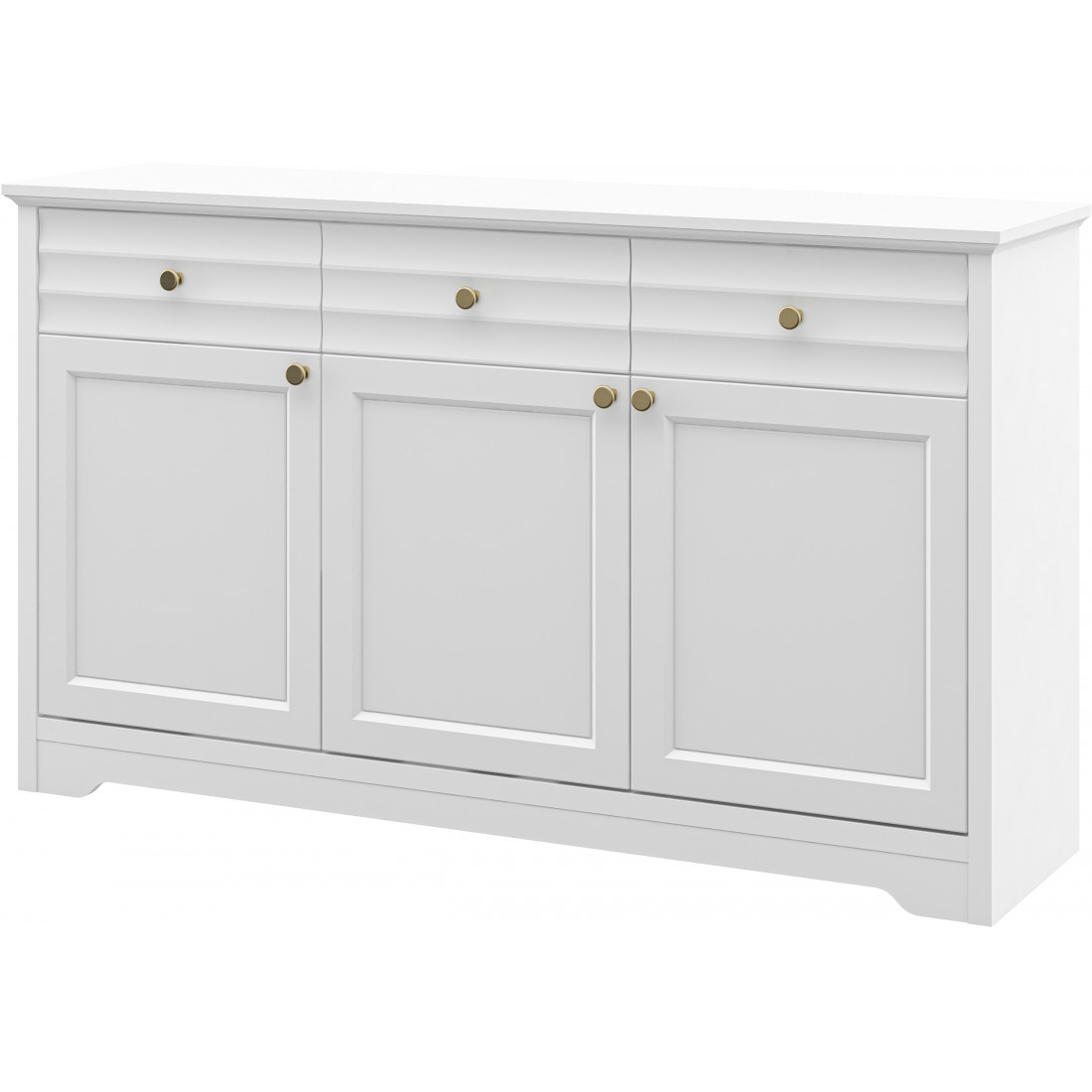 Денвер – это новая коллекция корпусной мебели для спальни, гостиной и столовой. Прямые строгие линии в сочетании с легкой горизонтальной волной на фасадах придают мебели элегантный и уверенный вид. Белый матовый цвет мебели, любимый многими за универсальность, можно сочетать с любым оттенком стен и пола. Округлые металлические золотые ручки разбавляют строгий и лаконичный вид фасадов и добавляют интерьеру утонченности.